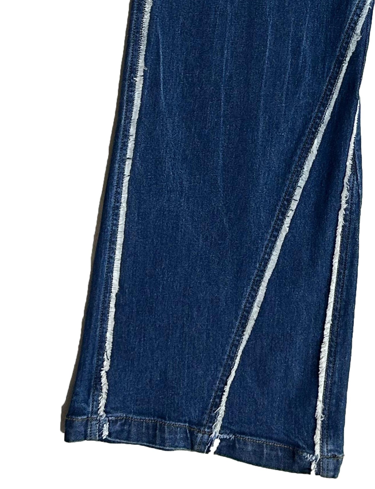Clean-cut denim with sharp contrast side detailing, tailored for a modern straight fit and everyday edge.