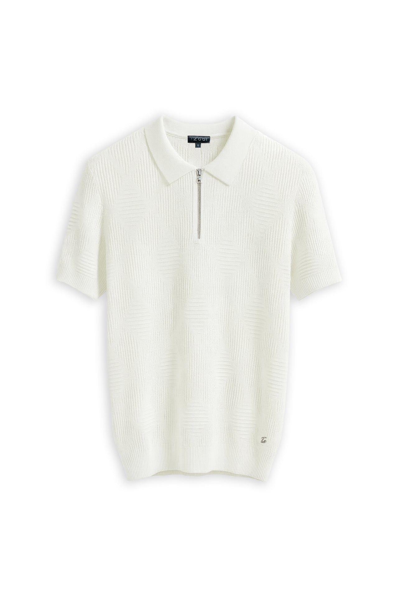 Minimalist elegance meets comfort in the Ivory Diamond Zip Tee. Featuring a refined diamond-texture knit, this polo is designed in a clean ivory hue for maximum versatility. The zip collar detail adds a modern twist, making it suitable for both casual and semi-formal wear. Soft, breathable, and tailored to flatter, it’s perfect for summer days or layered under a jacket in cooler weather. A polished essential that never goes out of style.