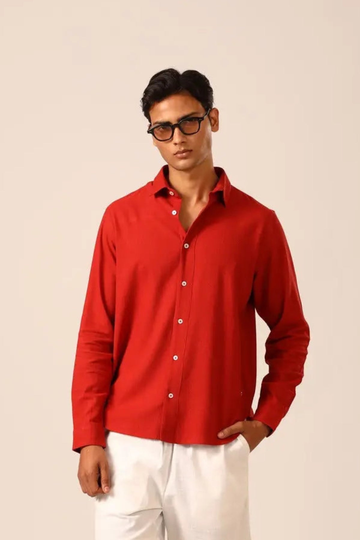 Linen Shirt in Red Saffron