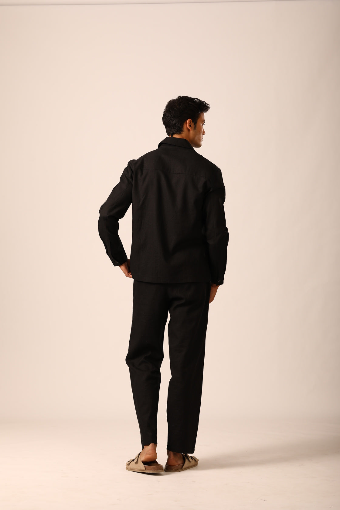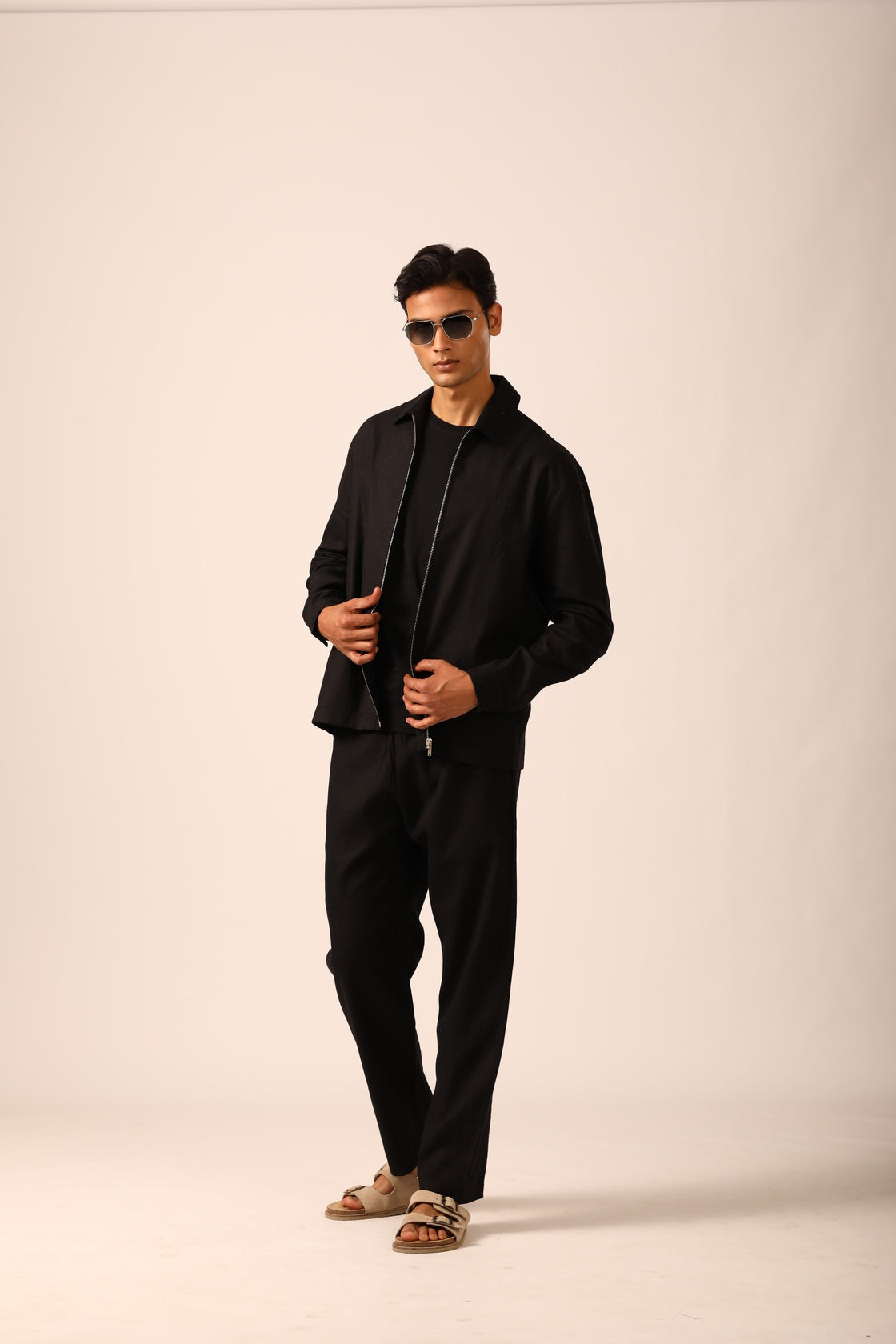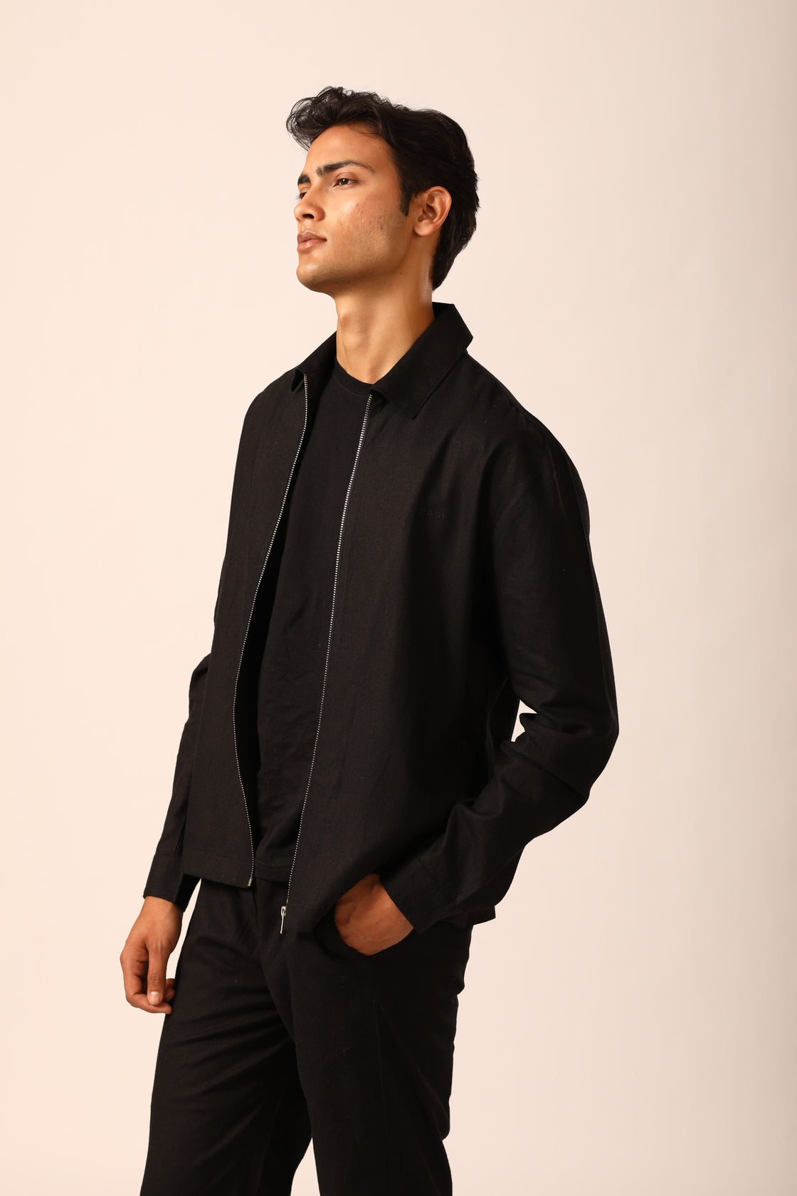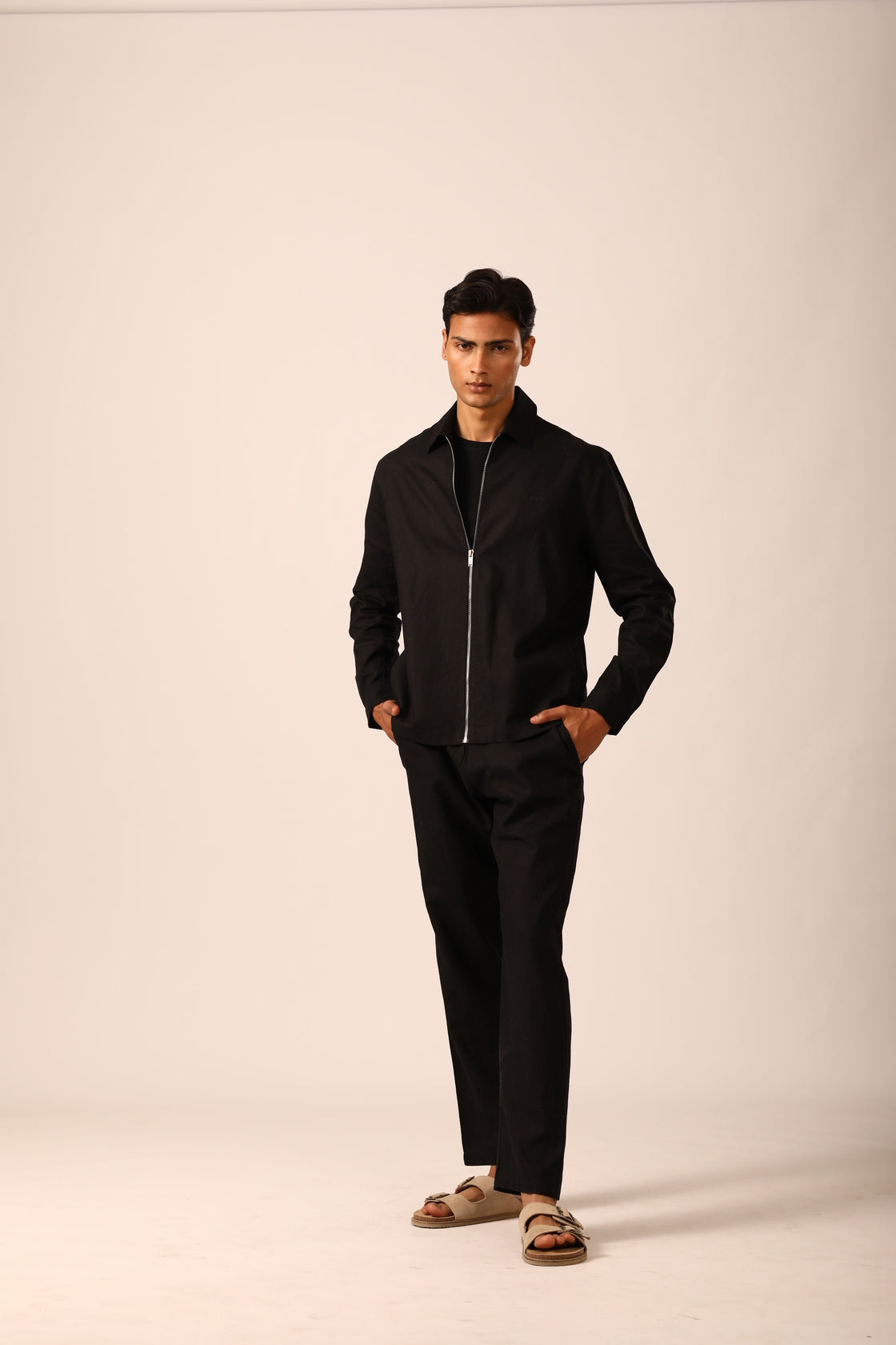 Overshirt crafted from a linen-blend fabric, featuring a lapel collar, long sleeves, and a zip-up front for a contemporary finish. Subtly detailed with brand name embroidery on the upper left side, adding a refined signature touch to the clean, structured garment
